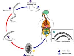 Анкилостомидоз - заболевание, развивающееся в результате заражения тонкой кишки анкилостомами. Личинки этих нематод обитают в почве и могут поражать человека, проникая через его кожу. Нематоды с кровотоком попадают в легкие, а через дыхательные пути в глотку, откуда заглатываются и проникают в тонкую кишку. Анкилостома питается кровью.