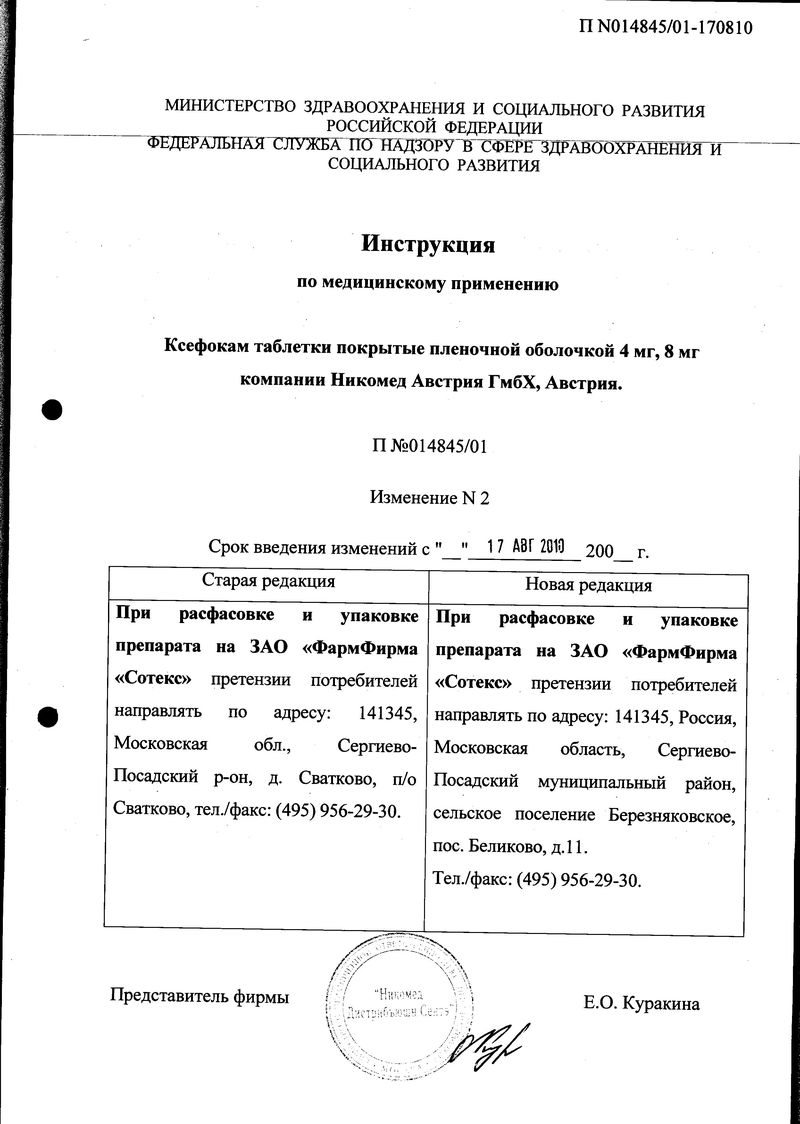 Описание лекарственного средства Ксефокам® не предназначено для назначения лечения без участия врача.