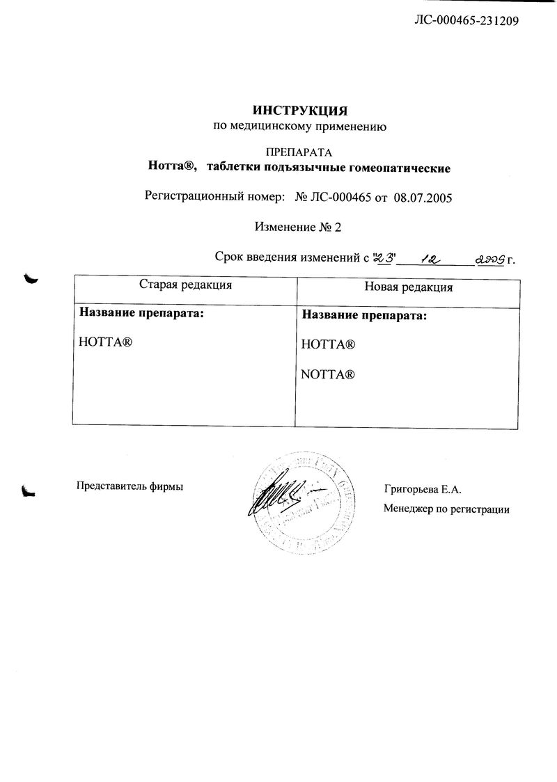 Описание препарата Нотта® не предназначено для назначения лечения без участия врача.