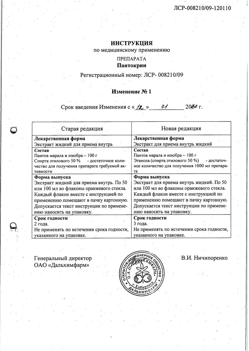 Регистрационный номер и дата: ЛСР-008210/09-161009Торговое название препарата ПАНТОКРИН