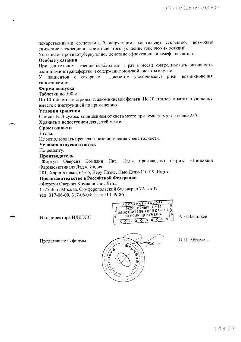 Активные вещества: Пиразинамид - по 0,5 г и 0,75 г