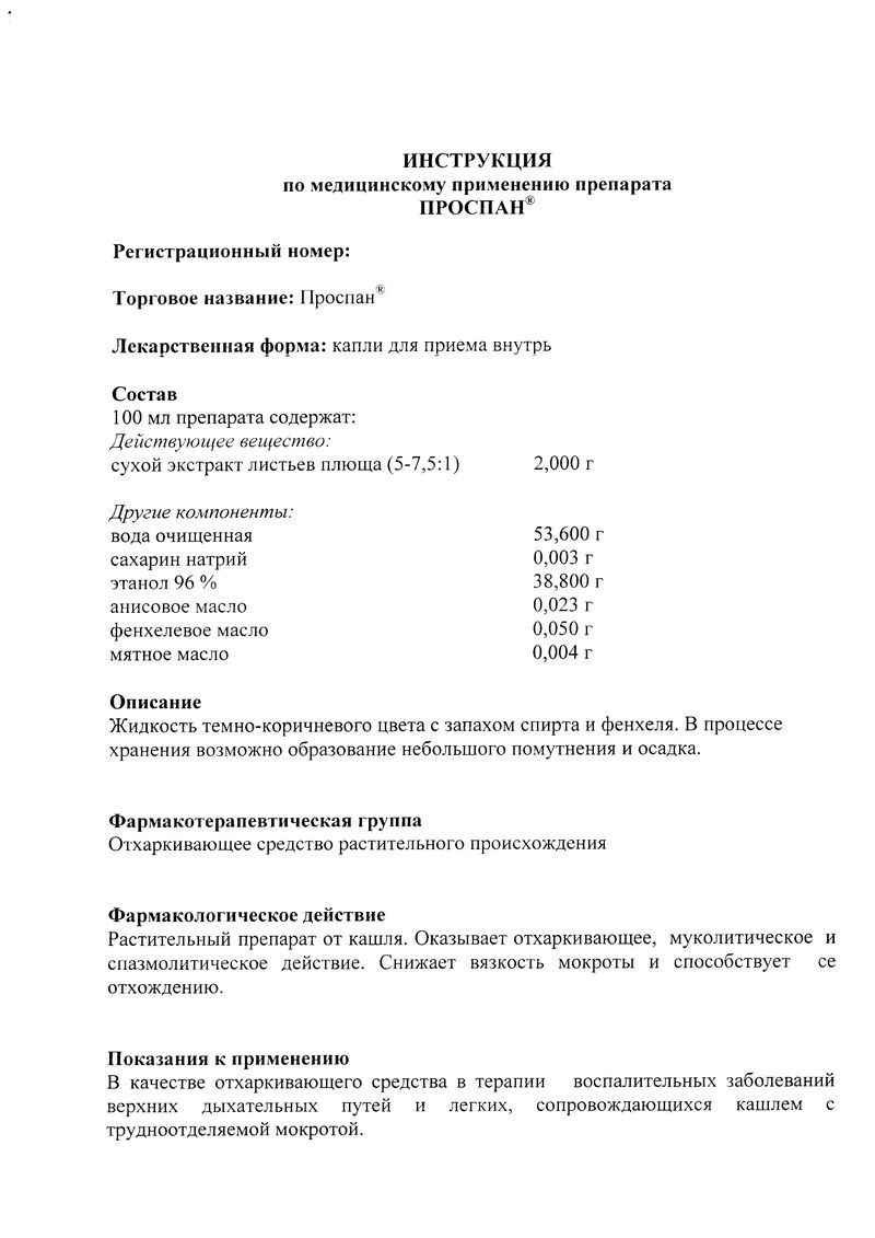 Проспан®, описание фармакологического действия лекарства, возможные побочные эффекты и противопоказания