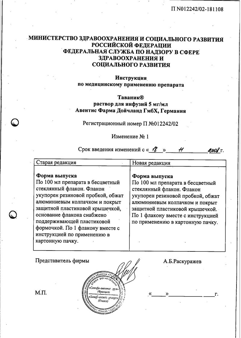 Регистрационный номер и дата:Торговое название препарата: Таваник (Tavanic)