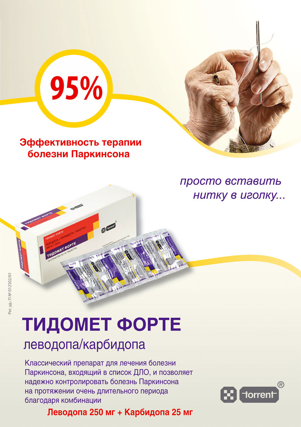 Прием леводопы прекращают за 12 часов до начала лечения Тидометом Форте, а в случае приема пролонгированных форм левокарбидопы - за 24 часа. Дозировка Тидомета Форте в этом случае должна составлять не более 20% от прежней дозы леводопы. Поддерживающая доза составляет 3-6 таблеток в сутки для большинства пациентов.