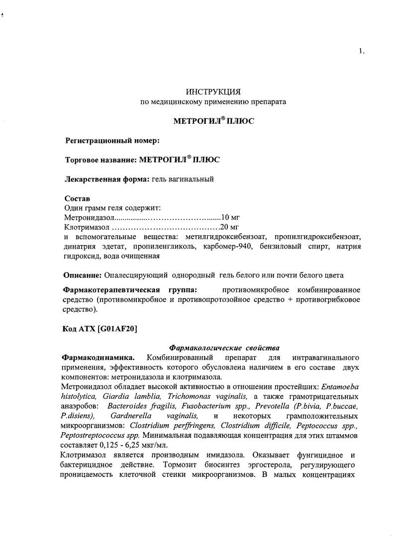 Описание препарата Метрогил® Плюс не предназначено для назначения лечения без участия врача.