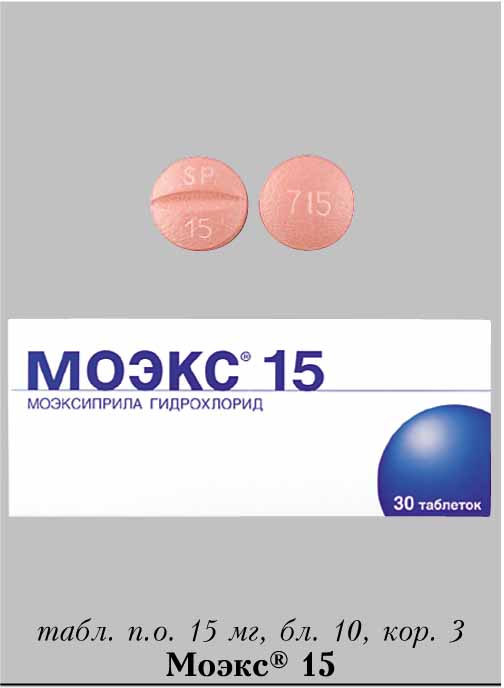 - 1 таблетка содержит 7,5 мг или 15 мг моэксиприла гидрохлорида.